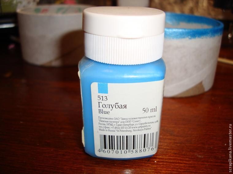 2) Акриловой краской закрашиваем один край бобины (цвет краски зависит от задумки).