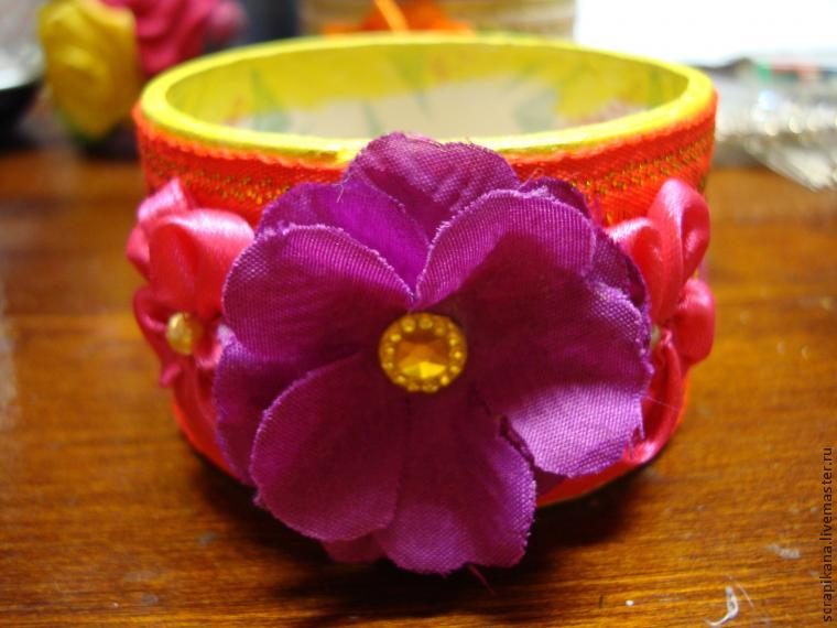 7) Место стыка тесьмы декорируем цветами и листиками — кто во что горазд. Вариант № 1: