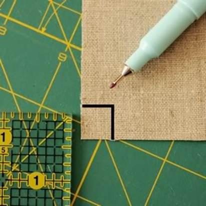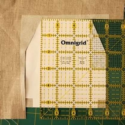 Отмечаем квадратные уголки (1,25×1,25 см) обмылком или восковым карандашом и обрезаем их. Вырезаем из основной ткани вторую деталь домика, обойдясь в данном случае без дополнительных подложек.