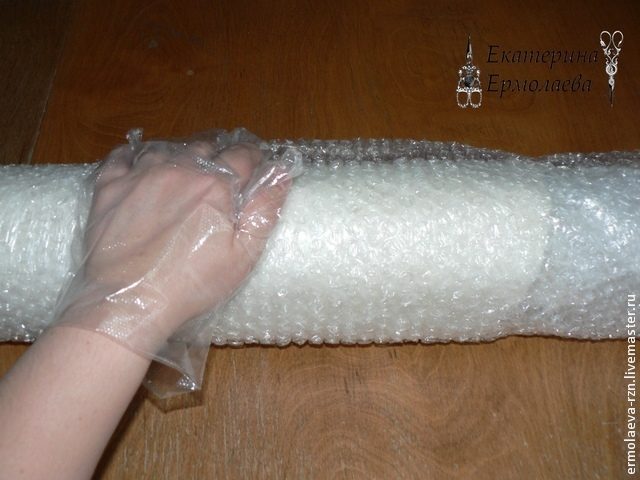 Плотно наматываем нашу раскладку вместе с пупыркой на трубу и катаем в рулоне 200 раз.