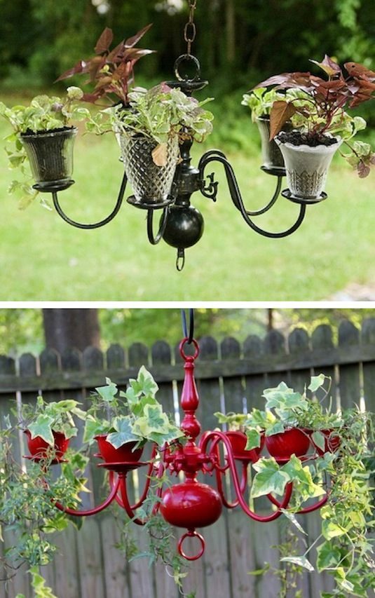 Это шикарная идея для оформления внутренних двориков, а также для украшения деревьев. И снова используйте каскадные и вьющиеся растения вроде плюща.