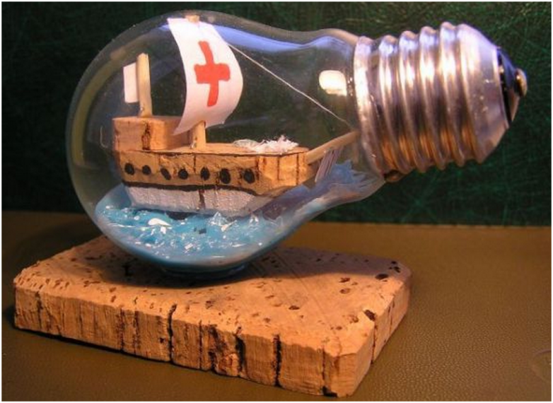 Вот более интересный вариант того, что можно сделать из лампочки, старый корабль в бутылке. На этот раз это судно в лампочке.