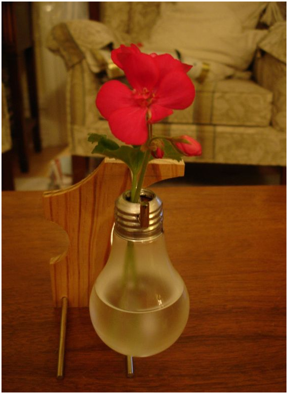 Еще одна интересная вещь, которую Вы можете сделать, используя сгоревшую лампочку – это крошечная ваза. Сначала удалите нити и все остальное, и подсоедините силиконовые прокладки под лампочку, или повесьте ее где-нибудь.
