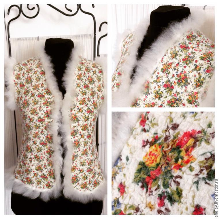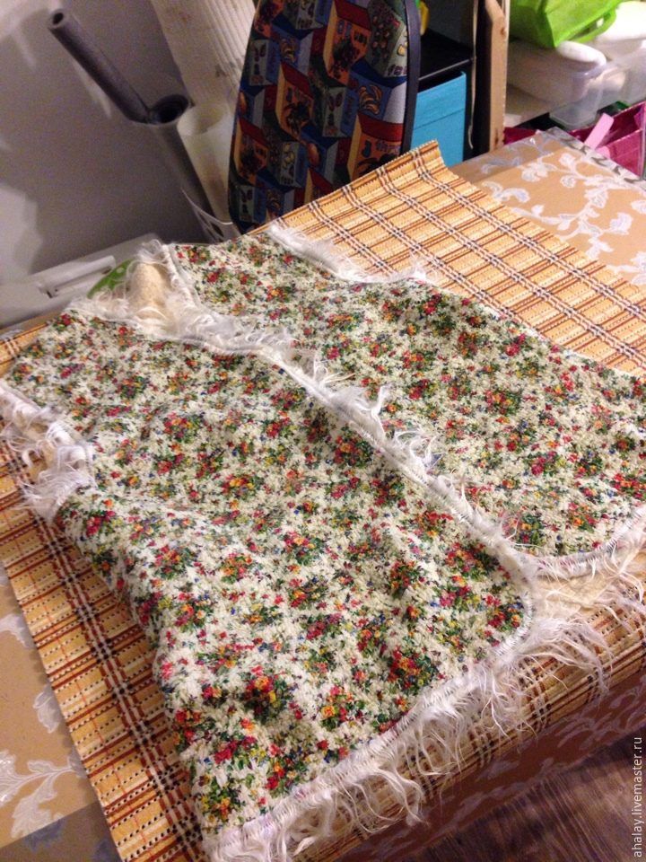 После проката вынимаем шаблон и опять хорошенько проходимся в перчатках по внутренней поверхности. Можно «поерзать» внутренней (ни в коем случае не наружней!) поверхностью жилета по коврику. На этом этапе мы видим, что сливер и хлопок подружились.