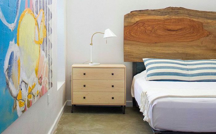 Креативные деревянные изголовья совсем необязательно устанавливать лишь в комнатах, оформленных в деревенском стиле. Они станут украшением и современной спальни, оформленной как в минималистском, так и модерновом стиле. Хотя дизайн изголовья и используемый материал должны соответствовать общей атмосфере. Простые обработанные деревянные панели или даже необработанные неполированные доски с чётким рисунком отлично подойдут для такой комнаты. Фон должен быть максимально нейтральным, а декор ненавязчивым.