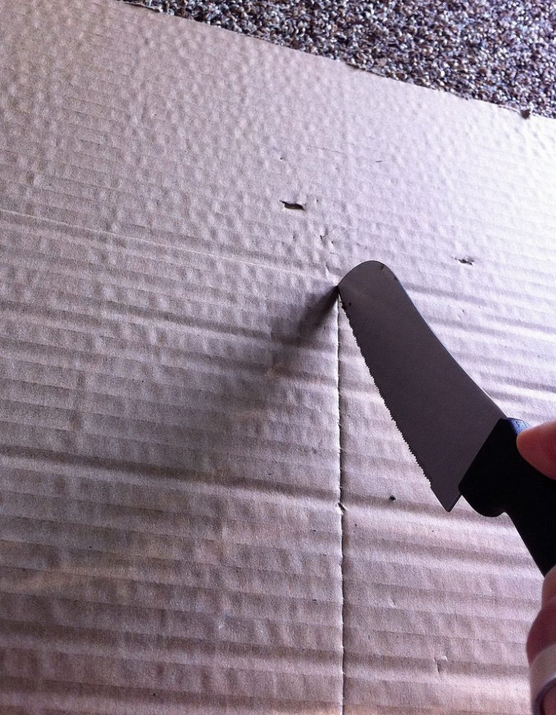 Если вы будете работать не на своем рабочем столе, а прямо на месте расположения дорожки, то делаем из картона своего рода экран, который защитит от краски землю. Просто положите одну из плиток на больший, чем сама плитка, кусок картона, обведите плитку карандашом или ручкой, и вырежьте форму.