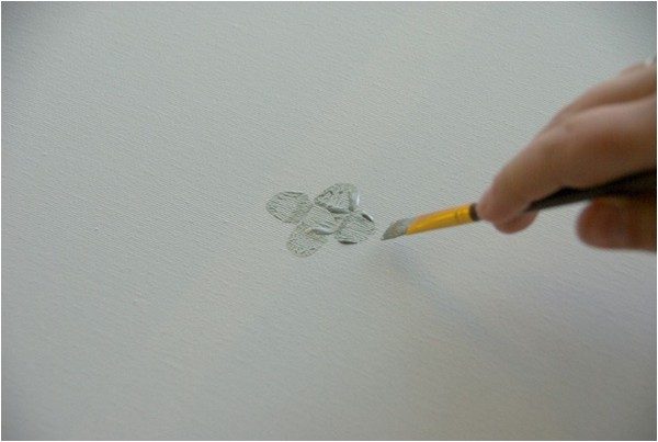 Нам понадобится два больших холста и серая, блестящая акриловая краска. Для начала можно попробовать поиграть с узорами и проекцией на обычном листе бумаги. Отложите холст и сделайте узор, который потом можно повторить на материале.