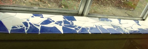 Вы также можете использовать мозаичную плитку для таких проектов как этот. Выберите куски плитки, которые нужно использовать, измерьте подоконник, а затем выложите части, чтобы выяснить, как Вы хотите чтобы это выглядело, и затем используя клей для плитки приклеить каждый кусок на месте. Позвольте ему высохнуть и нанесите затирку.