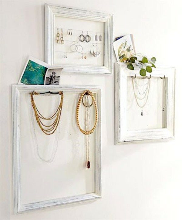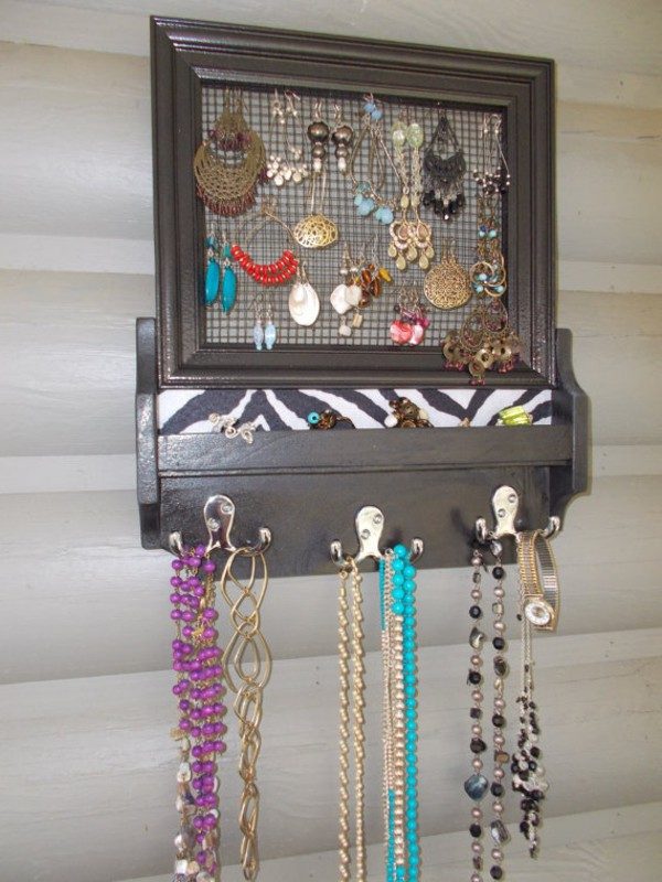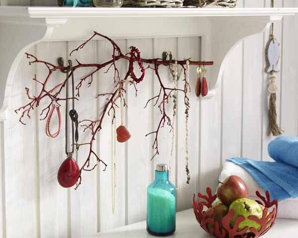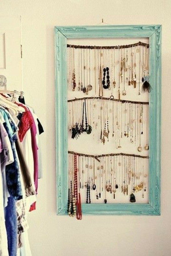 Кованое железо, коряги. рамки для картин — всё это отличные материалы для изготовления вешалки для хранения украшений; они используются наиболее часто. Идеальным держателем украшений может стать и раскрашенная или, наоборот, оставленная в естественном виде ветвь. Если вам захочется украсить такой деталью свой дом — присмотритесь к вариантам выше!