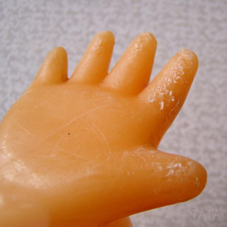 Паяльник пока не отключаем, так как им можно очень хорошо загладить царапины и шероховатости на ручках, ножках, и даже на личике. Вот такие, например, «травмы» были до заглаживания на пальчиках: