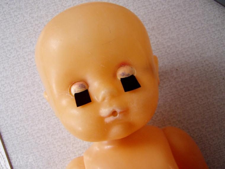 Сначала аккуратно плоской отверткой делаем «трепанацию черепа» — у многих платсмассовых советских кукол похожая конструкция головы. Последние жалкие пучочки волос я срезала ножницами под корень, а потом изнутри удалила остатки волос пинцетом: