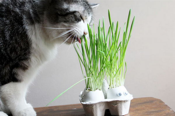 В таких горшочках можно вырастить траву. Эта мелочь добавит интерьеру комнаты свежесть и красоту независимо от времени года. Вы можете установить в яичную коробку несколько одинаковых горшочков. Особенно удобно, проращивать таким образом травку для кошки, которую она любит жевать.