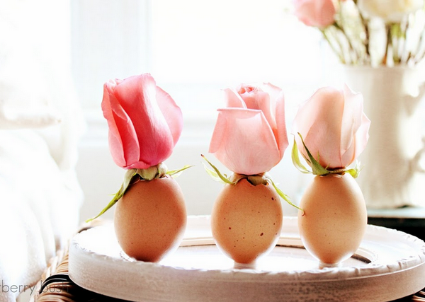 Используйте яичную скорлупу, как крошечные цветочные вазы, но при этом, будьте предельно осторожны, когда разбиваете яйцо. Попробуйте сделать несколько отверстий в верхней части и аккуратно открыть скорлупу. Пустое яйцо приклейте на маленькое зеркальце или другую поверхность с помощью восковой свечи. Затем налейте туда немного воды и поставьте цветок.