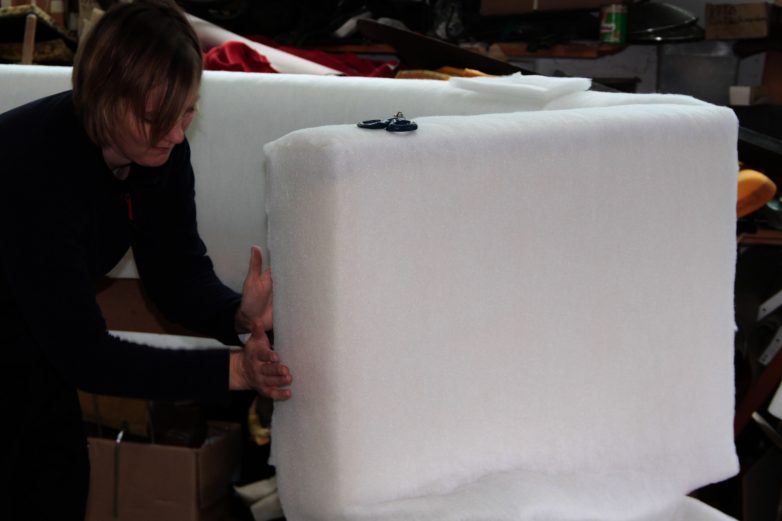 На паралон обязательно наклеивается вата, в данном случае — 100гр на квадратный метр…