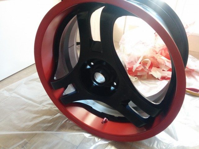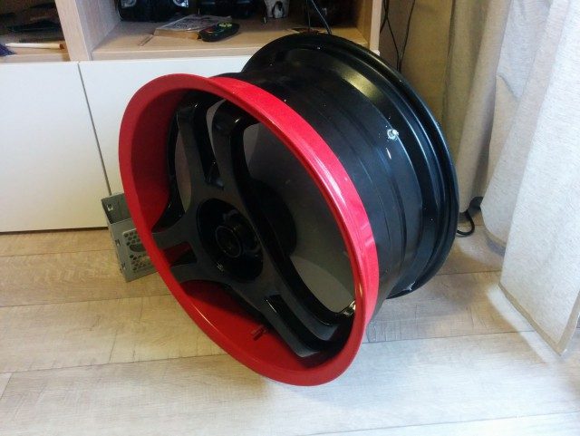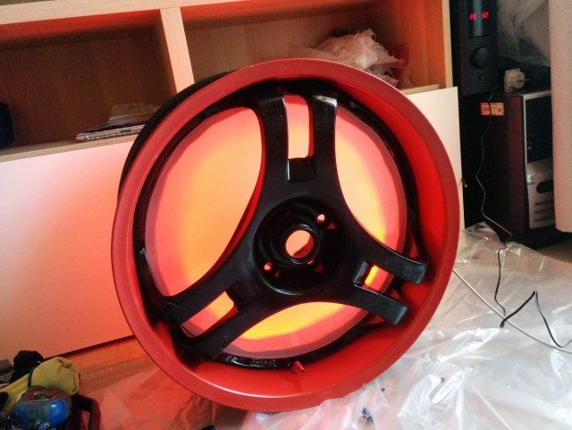 Покрыл лаком на два раза, красная краска на ободе немного скукожилась, но на эти места я уже махнул рукой и продолжил дальше.