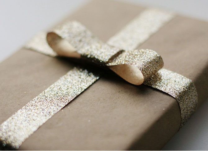 2. Обернуть подарок той же лентой, из которой сделан бант