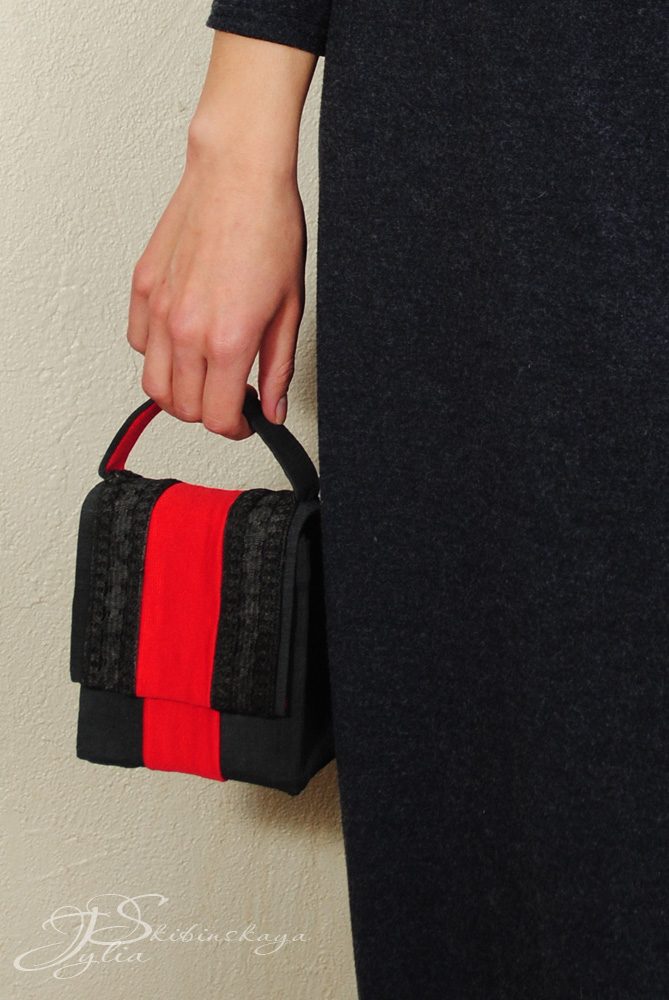 Для графитной сумочки я взяла еще кусочки красного трикотажа, оставшиеся от пошива пояса для платья (в тон которого и изобретается эта сумочка).