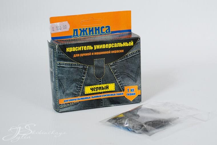 Вот этот краситель я использовала по инструкции. Единственное, я специально недодержала ткань, чтобы получился темно-серый, а не совсем черный.