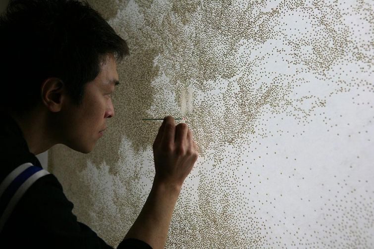 Корейский художник Jihyun Park нашел уникальный и типично азиатский подход к пуантилизму — он использует зажжённые благовония, чтобы прожечь крошечные отверстия в огромных листах рисовой бумаги, получая при этом художественные композиции.