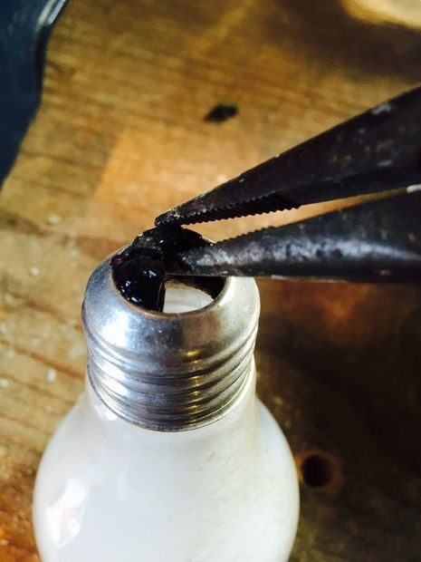 Возьми старую использованную лампочку и с помощью плоскогубцев освободи ее от всех внутренностей.