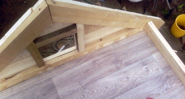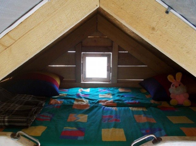Домик крохотный, но на крышу приходится лезть по лестнице