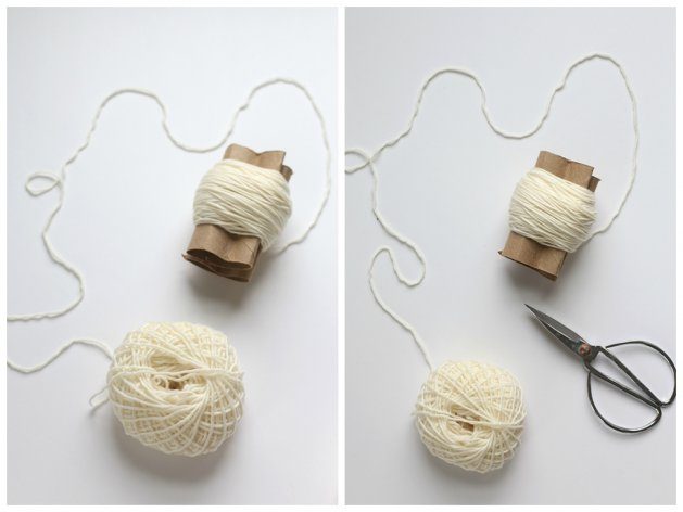 Извлеките картонные рулоны. Теперь у вас есть шарик из ниток.