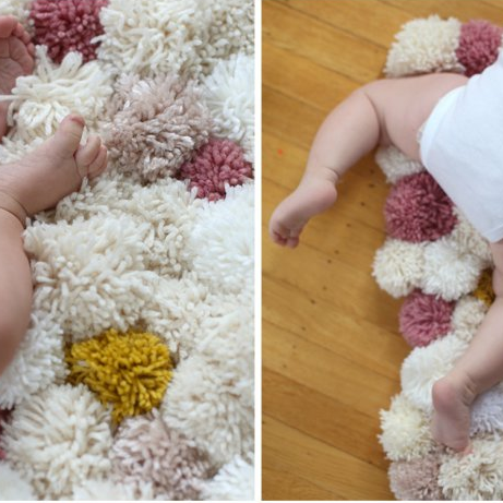Сделать коврик из помпонов своими руками несложно. А у вашего малыша появятся красивые «хризантемы», которые он с удовольствием будет изучать.