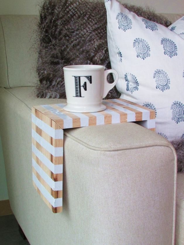 Деревянная доска шириной 20 см. Длина доски будет зависеть от ширины диванного подлокотника. В нашем примере длина равна 55 сантиметрам.