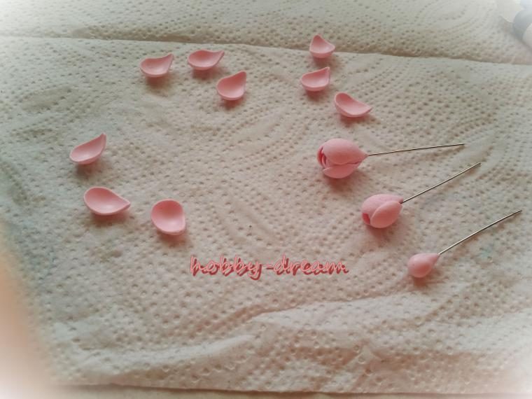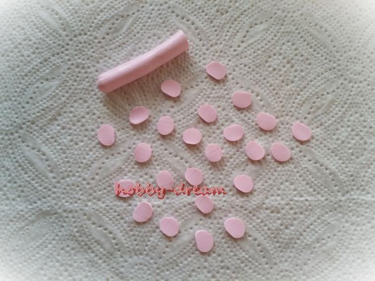 Для третьего слоя лепестков пластинки глины режем пополам: