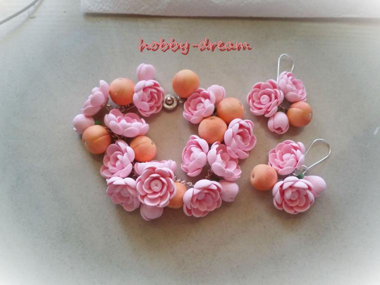 Запекаем, скручиваем пин в петлю и собираем браслет и серьги :)