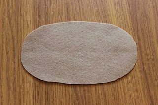 24. Вырезаем три овальчика из бежевого фетра для отверстий. Выкройку тут выложить не могу. Просто беру сантиметр, замеряю длину окружности отверстия и рисую на бумаге овал с такой же длиной окружности. Вырезаю овал из бумаги и «подгоняю» под точный размер, прикладывая к отверстию, слегка отрезая от овала лишние сантиметры. Потом по такому овалу вырезаю уже 3 детальки, они у меня все одинаковые.