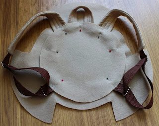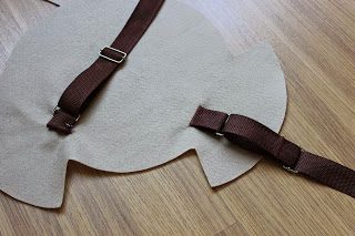 10. Из бежевого фетра отрезаем два прямоугольника размером 27х11 см (ширина зависит от ширины стропы). Из них мы будем шить верхнюю часть лямок.