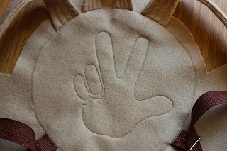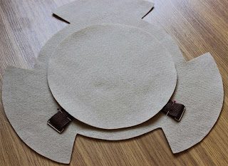 3. Из бежевого фетра вырезаем две детали по выкройке рюкзака и один круг немного меньшего диаметра (примерно на 4-5 см меньше).