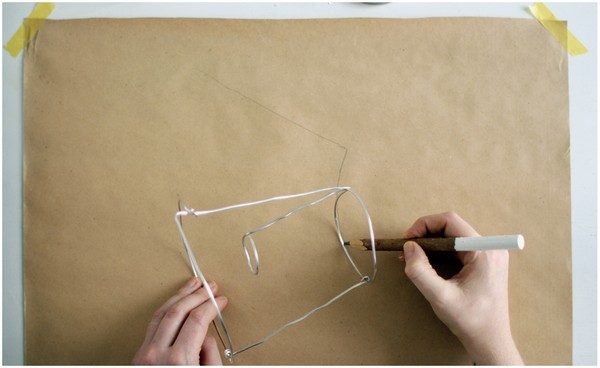 1. Расправьте лист бумаги. Теперь необходимо обвести полученный из проволоки каркас. Медленно поворачивайте его и обводите карандашом. Вырежьте шаблон и оберните вокруг, чтобы проверить размер.