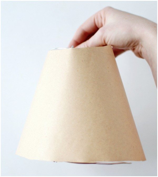 5. Закрепите полученную заготовку на основу из проволоки. Соберите светильник и вкрутите лампочку. Убедитесь, что лампа не касается абажура.