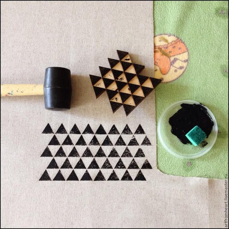 Теперь самая приятная часть процесса — выбрать штамп и набить рисунок на ткань.
