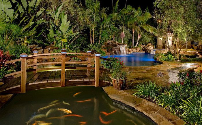 Даже в небольшом саду можно построить мостик, который станет роскошным композиционным центром, привлекающим всеобщее внимание. Маленький искусственный ручей, мост с камнями под ним, красивая подсветка – и райский уголок готов. Строительство небольшого моста не требует огромных затрат. Для минималистских моделей, которые скорее выполняют декоративную функцию, не понадобятся даже периллы.