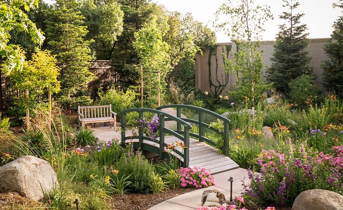 Сад с мостиком в рустикальном стиле