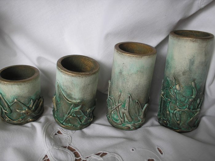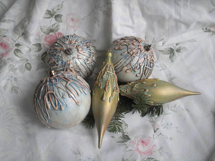 Идеи декорирования свечей и елочных игрушек горячим клеем.