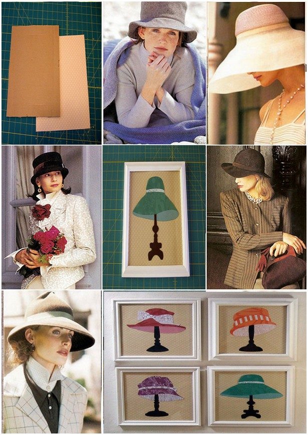 Автор сегодняшней идеи, Моника, предлагает создать коллаж в стиле «шляпок королевы Виктории». Простое руководство поможет Вам сделать уникальный шедевр, который найдет свое место в доме. Немного пофантазировав, можно смешать его с другими женскими аксессуарами: небольшим кошельком, ярким зонтиком и т.д.