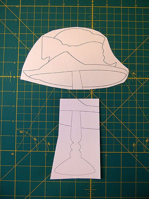 Для начала распечатайте шаблоны шляп, которые находятся на странице. Вы можете изменить размер по мере необходимости в соответствии с Вашими желаниями. Вырежьте шаблоны. Сама шляпа и ножка должны получиться на разных листах.