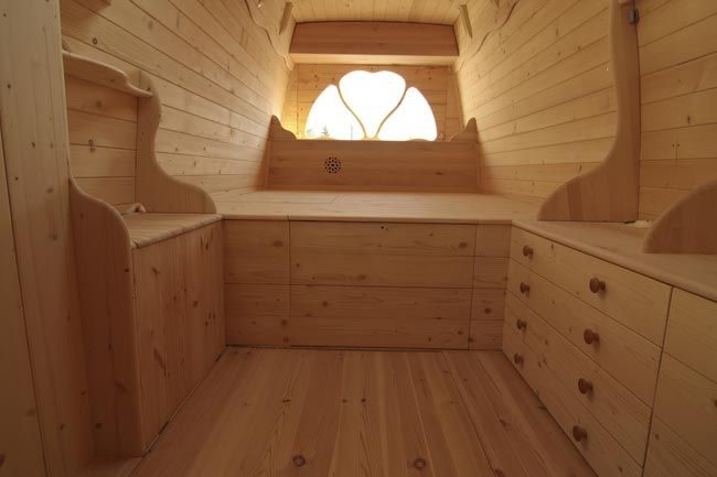 В итоге, он обшил деревом всё внутреннее пространство фургона