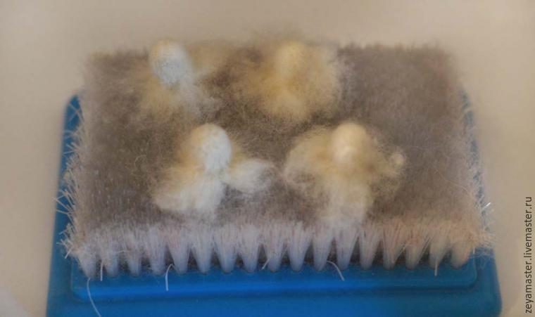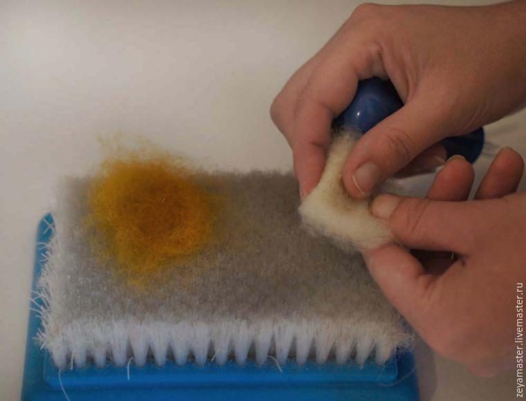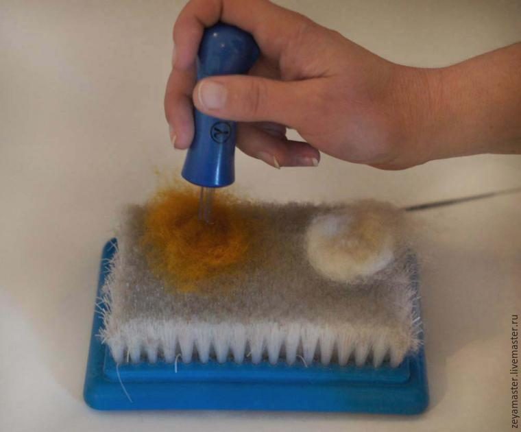 Но пока нет достаточного навыка, лучше всего сделать это на какой-нибудь поверхности. Это может быть щетка для валяния, губка (для такого малипусика подойдет даже маленькая посудная), войлочный коврик.