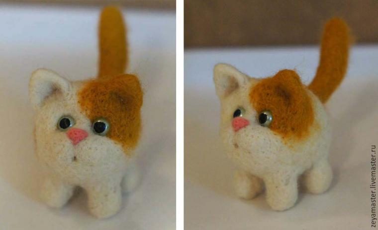 Для тех, кто уже имеет опыт по созданию хотя бы нескольких игрушек в технике сухого валяния, не составит труда изготовить подобных котят, просто глянув на фотографию. Этот мастер-класс рассчитан на начинающих, поэтому я постаралась как можно подробнее обратить внимание на мелочи и нюансы.