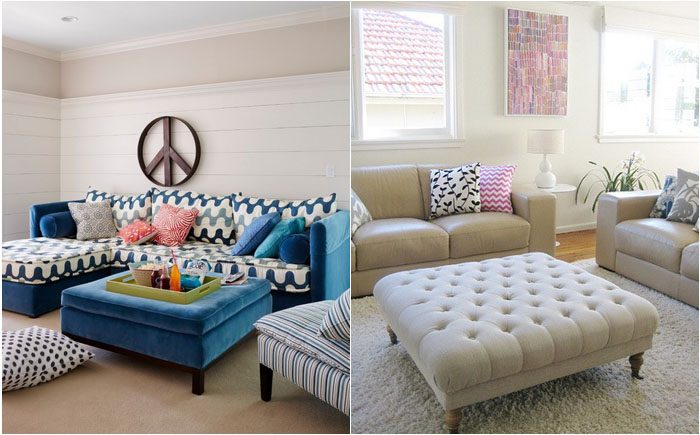 Если хочется преобразить интерьер комнаты, стоит использовать несколько предметов мягкой мебели. Ещё нужно поменять традиционный деревянный журнальный столик, например, на мягкий плюшевый пуфик, положить на диван несколько оригинальных подушек, а деревянные стулья поменять на мягкое кресло.