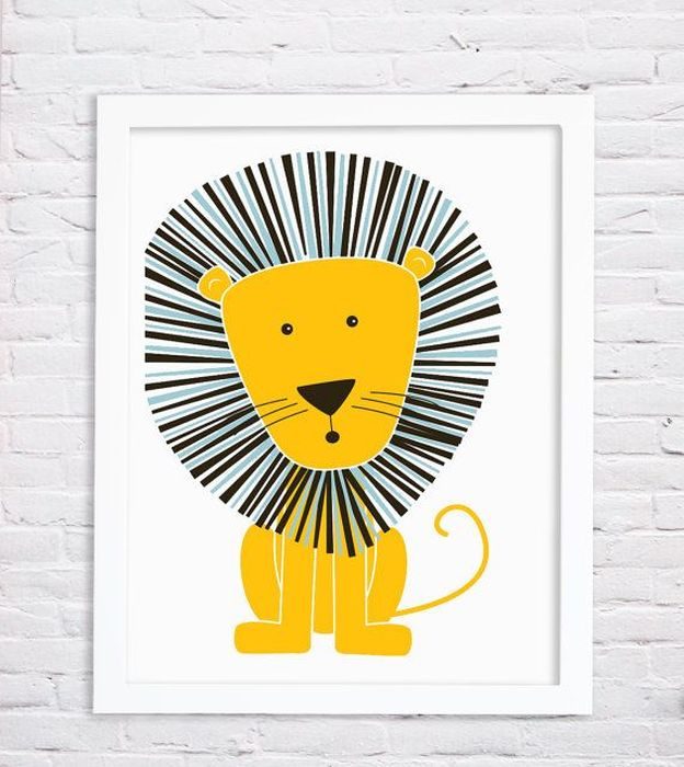 Декор, который будет радовать не только ребёнка, но и родителей – фото и рисунки чада. Для небольшой экспозиции можно отвести отдельную стену, а «картины» юного художника поместить в красивые рамки или самодельные цветные багеты из картона. Если малыш ещё не умеет рисовать, творческие способности могут проявить и родители, например, нарисовать несколько забавных постеров с львами, бегемотами, цветами или бабочками.