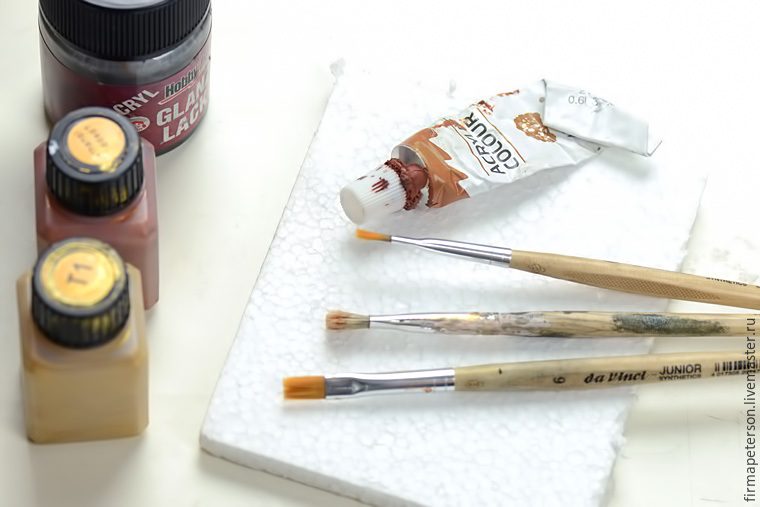 Использовал таже акриловые краски под серебро, медь и бронзу, чтобы создать эффект старого металла.