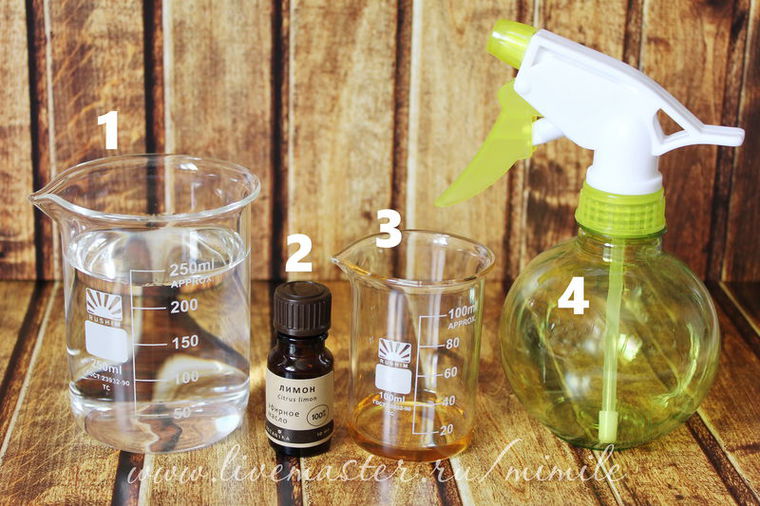 2) 10 мл эфирного масла лимона (либо любое другой эфирное масло на ваш выбор);