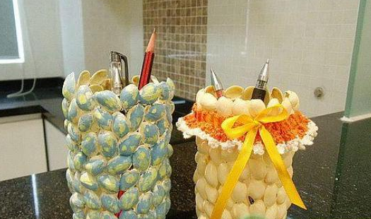 Вазочка для цветов и карадашница из стеклянной банки с фисташками
