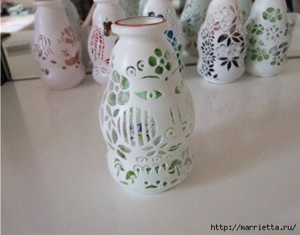 Стильные ажурные вазочки из пластиковых бутылочек от йогурта